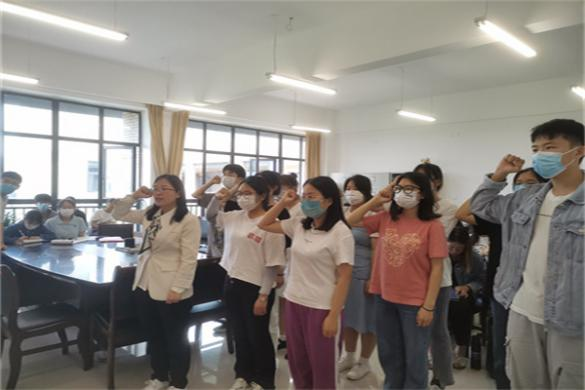 大会第三部分:公开票决情况后,党支部书记赵晓燕带领新发展的预备党员面向党旗宣誓。最后,全体齐唱《国际歌》。至此,支部大会取得圆满成功。
