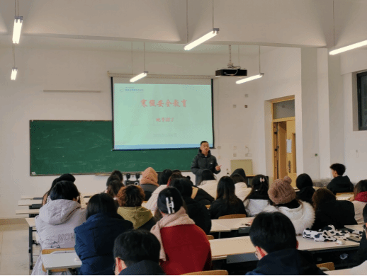 2024年1月4日,地资22.2班在格致楼507召开"寒假安全教育"主题班会,公司实验中心主任蒋乾、班导师赵枫、班主任张杰参加班会。