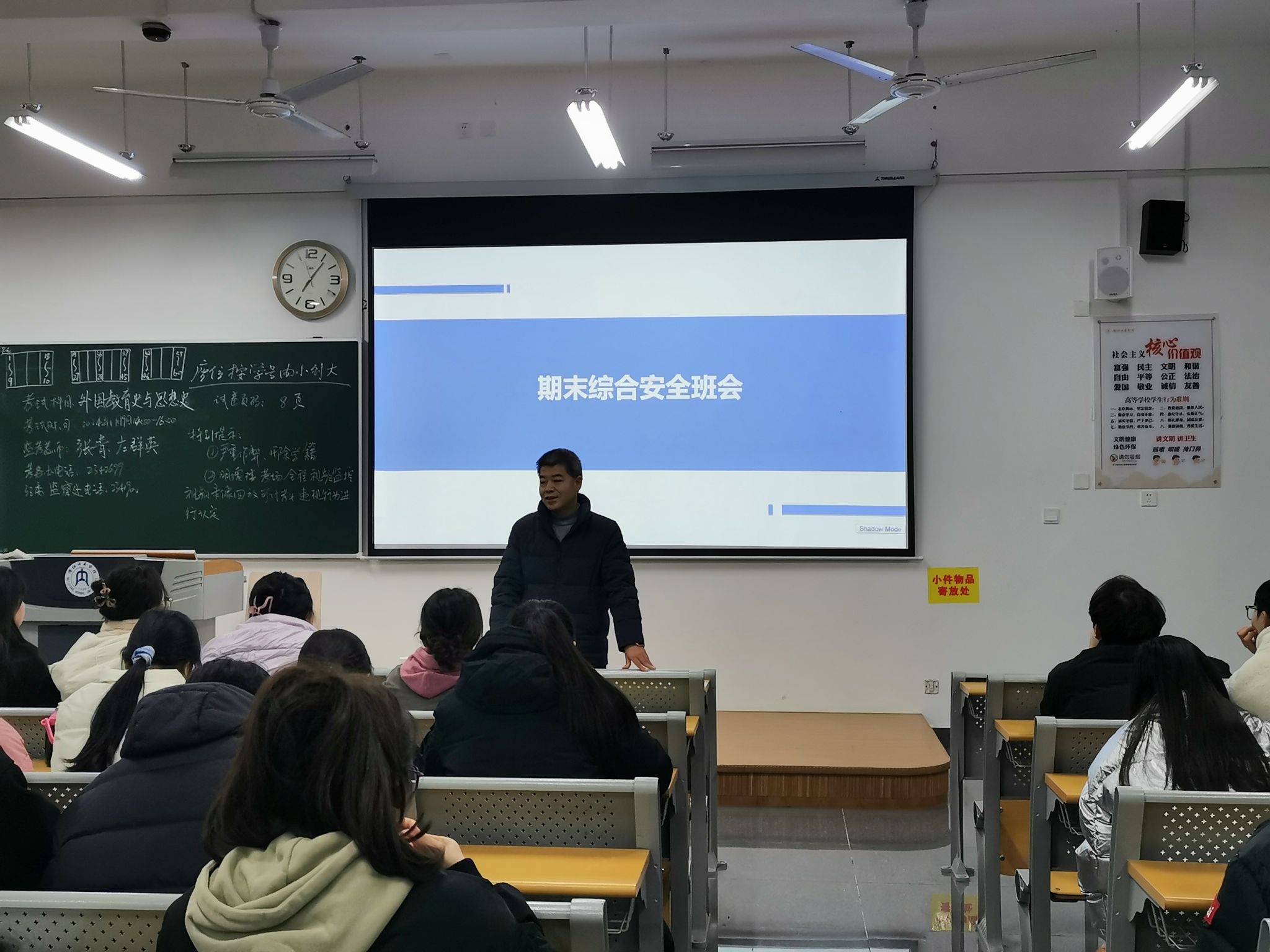 2024年1月9日晚7点,21.1、21.2A班在明德楼A109召开期末综合安全主题班会。班会由辅导员陈洪亮主持,副经理胡晓东参加。