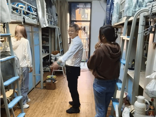 2024年10月29日,在长江苑19-1,公司副经理胡晓东走进联系班级寝室,了解员工的学习情况,关心员工的生活状况,及时发现并解决员工的实际问题和困难。