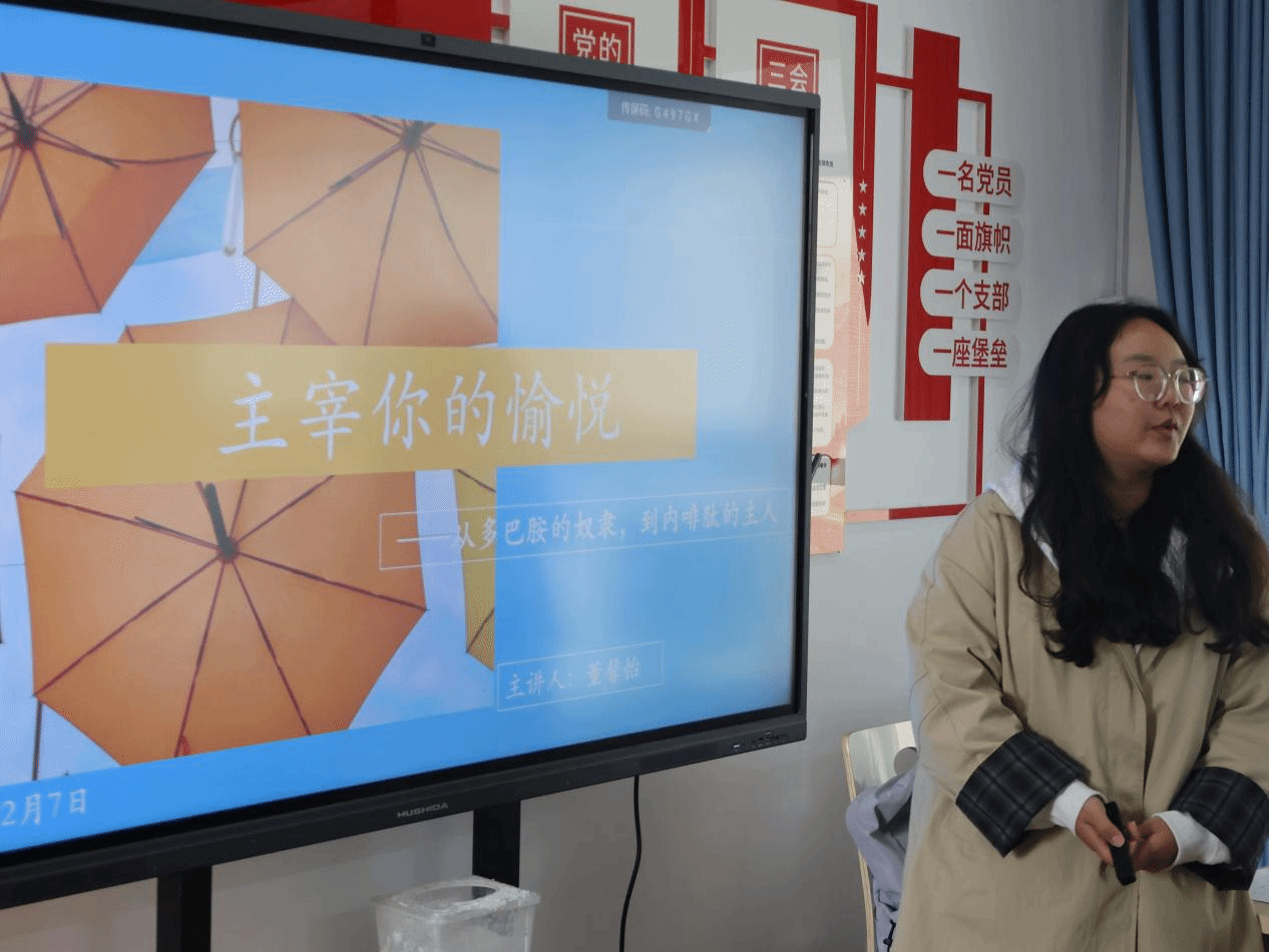 12月7日上午10:30,《主宰你的愉悦》心理主题演讲于公司党团活动室举行,公司多名员工积极参与,共同学习科学情绪调节方法。