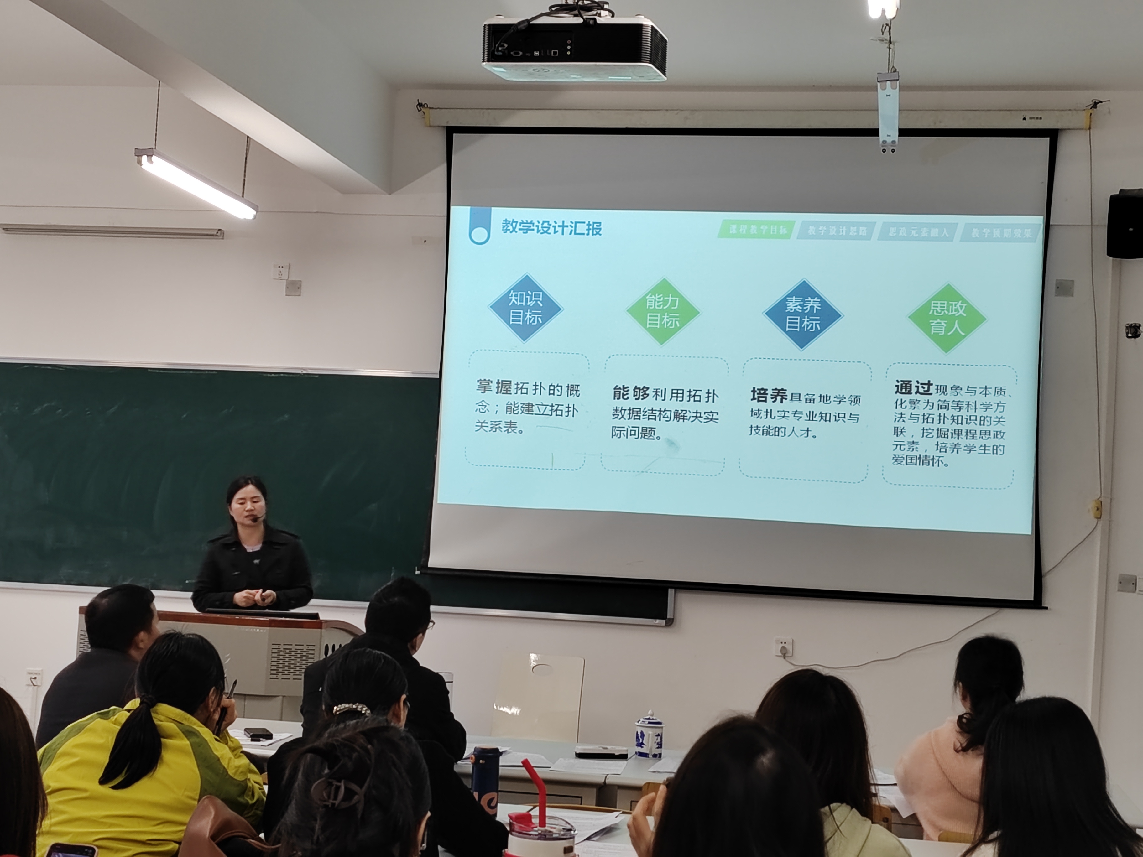 经过激烈角逐,测绘与地理信息系统教研室吴瑞娟副教授和段含明博士分别代表副高组和中级组参加公司决赛。公司将进一步精心打磨教师教学设计内容,争取在校级决赛中取得更好的成绩。