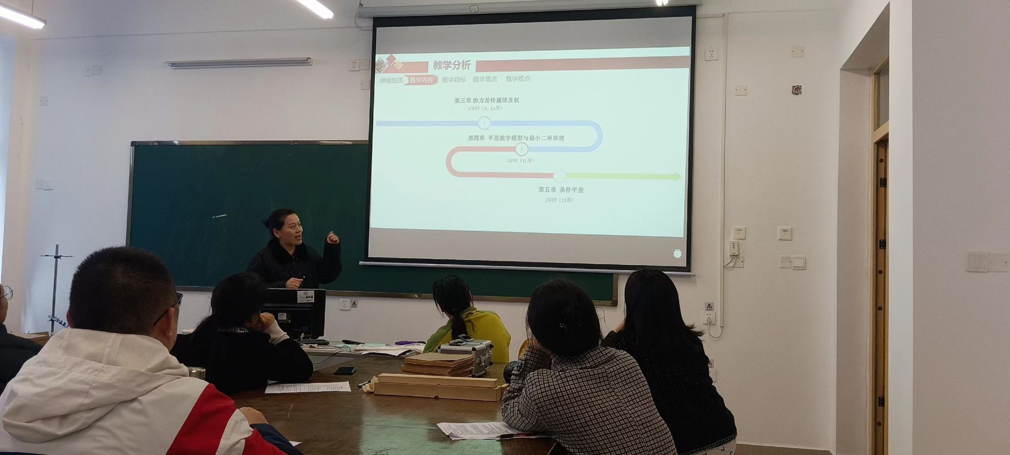 本次教研活动由教研室主任王芳主持,全体教研室成员听取了这学期担任课程老师的说课和试讲,听课结束后大家进行了认真评议和总结。大家一致认为:要上好课,首先备课要充分、目标明确、知识传授到位、思政点融入恰当、PPT要合理、教学手段多样、师生互动情况较好、能理论联系实际;而且作为一位有多年丰富教学实践经验的教师,语言更要生动、精神饱满、举止稳重。只有这样才能够胜任课程教学。