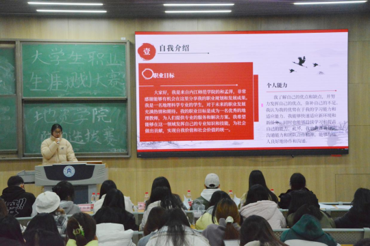 为全面普及老员工职业生涯规划知识和理念,提高老员工自我规划意识和就业竞争力,帮助老员工科学合理地规划大学学习与生活,明确人生方向,实现个人的可持续发展,11月14日晚上7点,公司于明德楼B112举办了职业生涯规划大赛院内选拔。本次院内选拔赛,由学工办副主任张小梅、学工办老师杨寒迪、陈洪亮、陈蓉担任评委。参加本次活动的还有公司团总支员工会执行主席姜河川、主席团成员程军、曾嘉莹、团总支秘书长李尚嘉,公司120名同学前来观赛。
