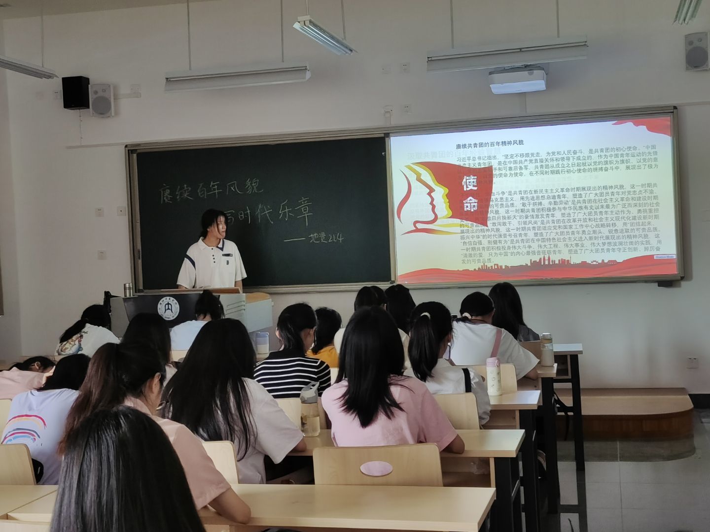 6月1日17:00,2019级4班在明德楼B202召开团组织生活会。会议开始,主持人组织全班同学齐唱共青团团歌,同学们满怀激情,目光坚定,句句铿锵,展现出共青团员应有的责任与担当。会上,同学们就习近平总书记在庆祝中国共产主义青年团成立100周年大会上重要讲话精神和当前各项重点工作进行讨论,表达了“志不求易者成,事不避难者进”的勇气和信念。最后,团支书作总结:“习近平总书记的重要讲话是对广大团员青年的深切关怀和殷殷厚望。”6月6日19:00,2021级2A班在明德楼B104召开团组织生活会,会议以同学讲解PPT和集体观看视频相结合的方式深入学习了习近平总书记在共青团成立100周年上的重要讲话精神,鼓励团员青年聚焦当前时事政治,紧跟时代步伐,争做时代青年。会议末,团支书深情说道:“青年是祖国的未来、民族的希望,也是我们党的未来和希望。通过此次学习,希望同学们把青春奋斗融入党和人民的事业,成为实现中华民族伟大复兴的先锋力量。”6月1日19:00,2020级1班在明德楼A403召开团组织生活会。会上同学们一起重温入团誓词、观看视频和学习“四条宝贵经验”,全面回顾100年来共青团坚定不移听党话、跟党走的青春历程,激发同学们的奋进激情,再次坚定同学们在新时代、新征程上始终做好党的忠实助手和可靠后备军的崇高信念。
