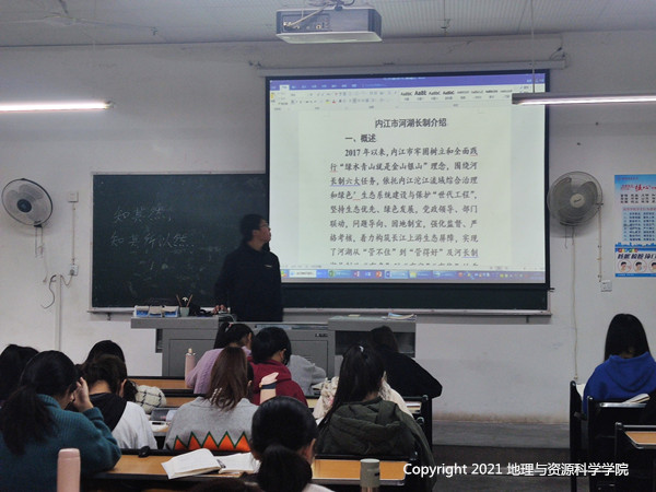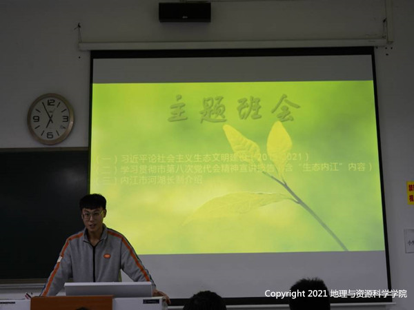 本次“2021年河湖长制进校园”主题班会以2019年至2021年习近平总书记论社会主义生态文明建设重要讲话、内江市第八次党代会精神宣讲报告、内江市河湖长制介绍为主要学习内容。其中2019级3班于10月28日下午4时30分在一教111开展了主题学习,团支书结合学习材料,带领同学们共同学习了河湖长制工作的相关知识。在了解了相关制度和提出背景后,该班班长对同学们说道:“只有坚持绿水青山就是金山银山的理念,强化生态环境联建联防联治,才能让大美内江天更蓝、山更绿、水更清。”其他同学都纷纷表示赞同。2021级1班全体同学于10月30日下午16时30分在班委的组织下,在五教北102学习了习总书记关于社会主义生态文明建设的重要讲话以及内江市第八次党代会的重要精神。通过学习内江市“河长制湖长制”的出台背景、六大任务以及工作制度等相关知识,不仅让同学们对“河湖长制”以及内江市的水体资源有了更深刻的了解,也激发了同学们保护水资源,热爱生态环境的热情,大家积极交流了学习心得,都对内江市的各项建设方案实施满怀信心。2021级2A班的同学也在班级团干部的组织带领下,学习了河湖长制工作六大重点任务、“五清”行动、“四项行动”与“清四乱”专项行动等相关内容,2A班的同学们纷纷表示在今后的学习生活中会积极践行环境保护,努力养成爱护环境的好习惯,成为一个有责任、有担当、朝气蓬勃的内师学子。