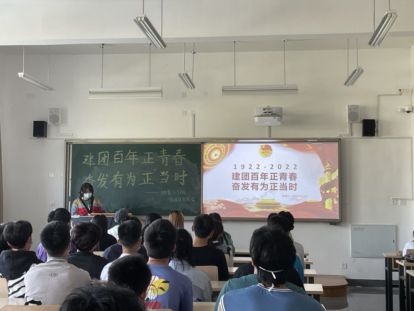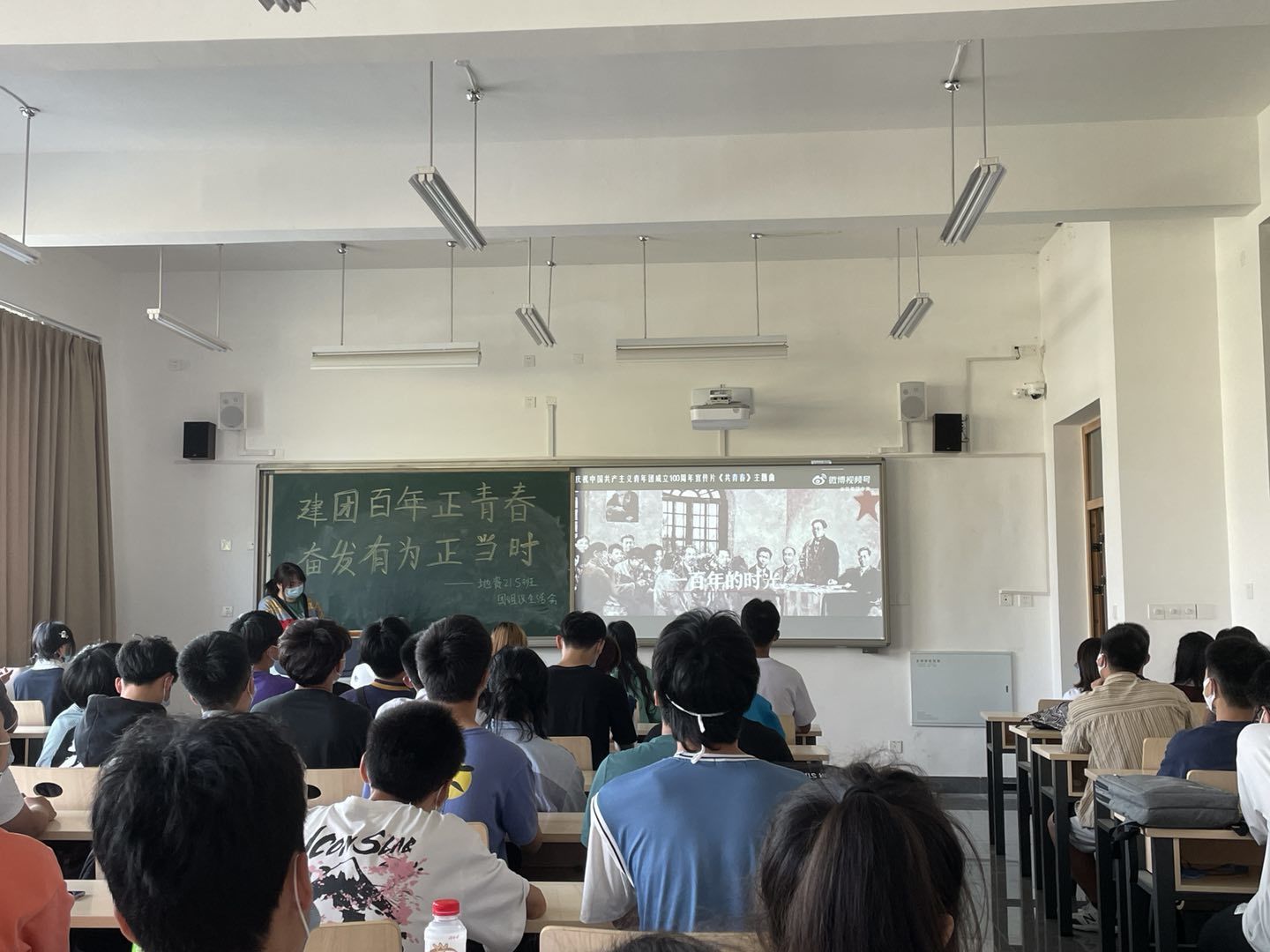 5月15日15时,2021级4班在格致楼509教室开展了团组织生活会。首先,同学们通过观看相关视频,深切地感受到中国共产主义青年团所经历的不寻常发展历程,从成立之初到遭遇挫折再到走入正轨,最后到实现中华民族的伟大复兴,这都充分地展示了中国共产主义青年团强大的生命力。然后,同学们学习了《习近平在庆祝中国共产主义青年团成立100周年大会上的重要讲话》,习近平总书记强调:青年之于党和国家而言,最值得爱护、最值得期待。这让同学们更加明确了肩上的时代责任。随后,团支书邀请同学们围绕“如何做一名合格的共青团员”依次分享学习心得。大家踊跃发言,一致表示要认真学习,树立远大理想,维护青年团的光辉形象。最后,同学们合唱《光荣啊,中国共青团》并重温入团誓词。5月16日18时,2021级5班在明德楼A118教室开展团组织生活会。团会伊始,团支书向同学们介绍了共青团成立的背景、发展历史和意义。之后,大家共同观看建团百年主题MV《有我》并阅读《新时代的中国青年》白皮书和《新时代加强和改进共青团思想政治引领工作实施纲要》。大家明白了正值青春年少的我们要担起时代使命,为实现中华民族的伟大复兴而不懈奋斗。此外,5月14日12时,2020级3班在格致楼507教室开展本次团组织生活会。同学们在团支书的带领下重温入团誓词,让大家回顾了自己入团时的初心。随后,团小组的同学还为大家带来了诗朗诵《纪念建团百年》。