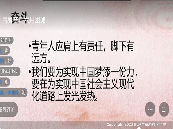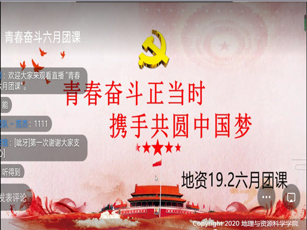 各班都以“青春奋斗正当时,携手共筑中国梦”为主题积极开展团组织生活会,并结合本班特色,收集同学们的宝贵意见和建议,集思广益,形成了一道道展现团员青年风采的亮丽风景线。其中2019级2班的全体同学于2020年6月26日上午十点整在钉钉直播班级群召开了6月团组织生活会,团支书组织同学们观看了关于青春奋斗的宣传片,同学们结合宣传片内容展开了热烈讨论,纷纷表示会积极参与志愿活动和社会实践,提高自身的责任意识,努力奋斗,为祖国建设添砖加瓦,让青春在党和人民最需要的地方绽放绚烂之花。通过此次团组织生活会,不少同学表示会认真学习领会习近平总书记的系列重要讲话精神,坚定理想信念,保持乐观向上的精神,把挫折变为前进的动力,努力成长成为中国社会主义事业合格建设者和可靠接班人。