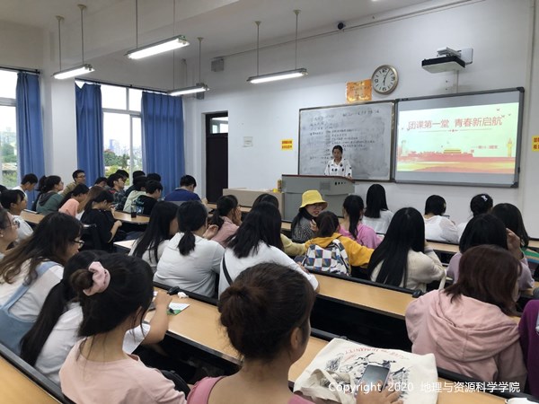 各年级各班都积极认真地结合主题开展团组织生活会,其中地资18级2班于2020年9月24日19:00至20:00在五教北601开展了以“团课第一堂,青春新启航”为主题的团组织生活会,通过组织团员青年集中奏唱团歌、集体阅读《团团致四川学子的一封信》、学习《带你走近“成渝地区双城经济圈”》团课PPT、观看《团团说唱节约美德》视频等方式,提高青年学子们的获得感和成就感。不少班级组织同学们进行宣誓活动,希望全体同学都能成为“厉行节约,反对浪费”的倡导者和践行者,强化同学们的节约意识。此外,各班级还通过各式各样的活动形式,帮助同学们了解国家大事,增进同学们对以习近平总书记为核心的党中央的政治认同、思想认同、情感认同;同时也让广大青年都更加了解成渝经济圈,了解当下经济形势,对未来有一个更清楚的规划,对自己有更高的要求,勉励同学们更加刻苦学习,努力奋斗;在生活上也更加注重勤俭节约,自觉传承中华民族的传统美德,以朝气蓬勃、青春向上的精气神迎接新的开始。