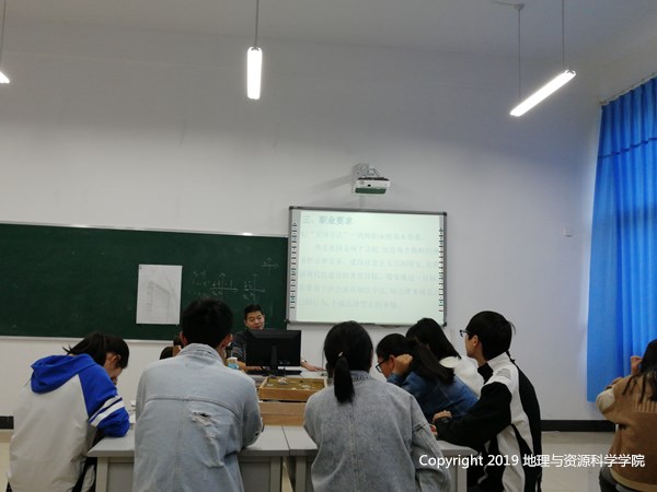 胡经理主要从时代要求、教师使命以及职业要求三方面展开讲座。提到时代要求和教师使命,他讲到,作为新时代的师范生,一定要立足公司产品,践初心担使命。而作为未来的人民教师,不仅要传授知识,还要懂得如何育人,立德树人,铸魂育人,传播知识,做好员工的人生导师,引导员工“扣好人生的第一粒扣子”。对于职业要求他也提出了关键五点,希望大家做到爱国守法、爱岗敬业、关爱员工、教书育人、终身学习。这关键五点不仅是教师职业的灵魂,更是日后地资19级1班同学们必须牢记的使命。