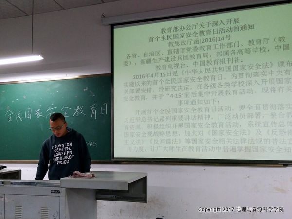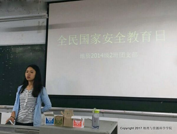 在本次教育宣传活动中,各支部均采用主题班会的形式,结合全民国家安全教育日视频,安全教育PPT等方式多方面,多角度,多方式的解读“国家安全教育”。其中16级2班通过讲解《国家安全法》及《反恐怖主义法》《反间谍法》等国家安全相关法律法规的知识来加强同学们的国防安全意识。15级1班通过ppt展示国家安全的相关资料,询问和引导同学踊跃发言。14级2班则通过小品讽刺了国家间谍并阐述国家安全的相关知识,总结如何防范国家安全,对同学们的观点进行提炼。活动内容丰富有趣,更进一步的加深同学们对国家安全范防意识,提高同学们的国家安全防范能力。