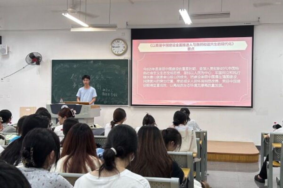 公司2023级3班团支部于6月14日18:20至19:50在明德楼B102开展了本次团组织生活会,会议由团支书李勇霖主持。会议开始,团支书对本次生活会做简要介绍。之后,同学们全体肃立,激昂的奏唱了《光荣啊,中国共青团》。紧接着,团支书就这次团组织生活会的目的并详细讲述了本次学习要点。最后,团支部书记组织开展关于践行习近平生态文明思想的知识问答,同学们积极配合、热切交流,表示作为青年应从自身做起,为实现美丽中国行贡献自己的智慧与力量。