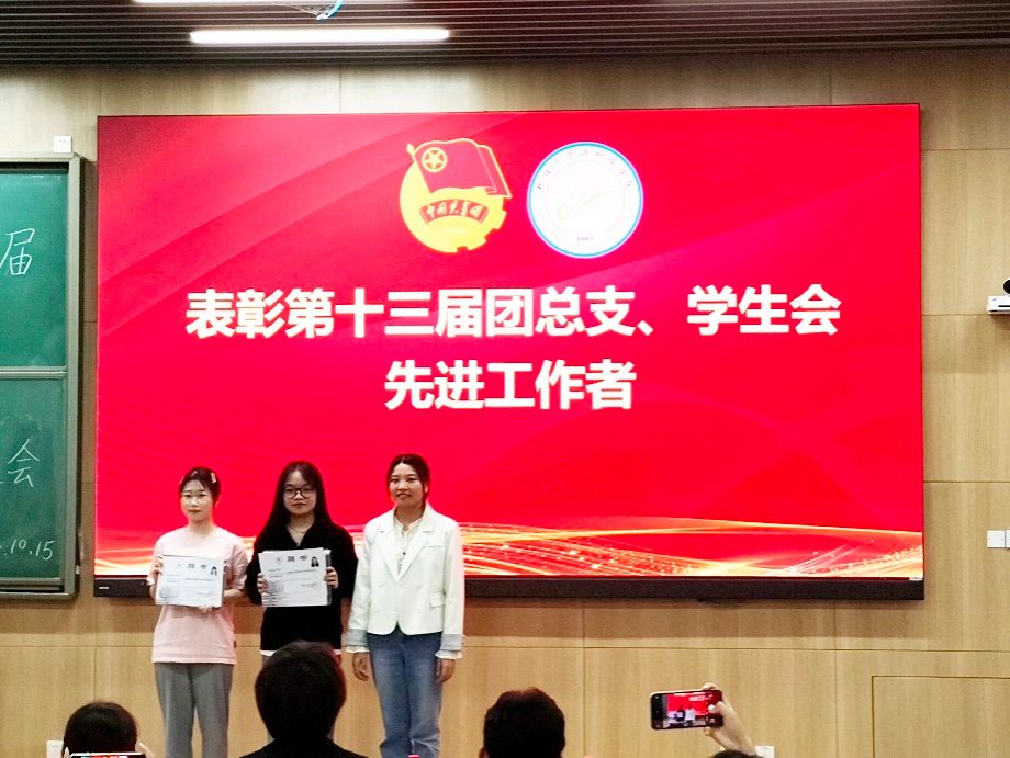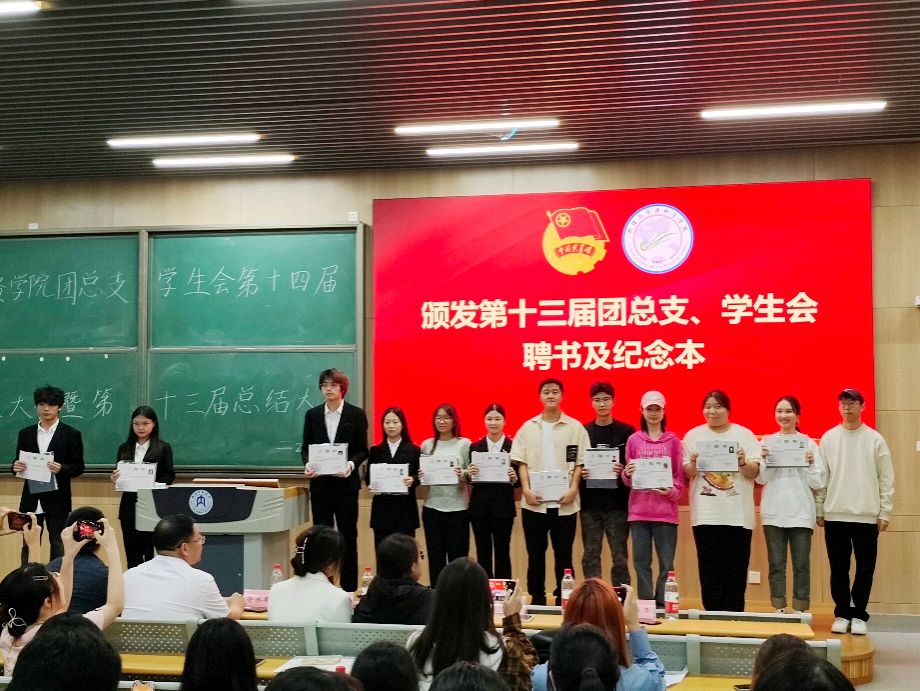 在庄严的团歌声中,大会拉开帷幕。首先,党委副书记何阳阳上台致辞,他对新一届团总支、员工会的成立表示祝贺,对上一届团总支、员工会的辛勤付出表示感谢,并提出三点希望和要求,一是牢记服务宗旨,二是争做学习标兵,三是树牢纪律意识。随后,张小梅、陈洪亮、陈蓉老师为第十三届团总支、员工会主席团、组织部等部门负责人颁发纪念品。齐永朝、何阳阳为第十三届团总支、员工会先进工作者颁发纪念品。