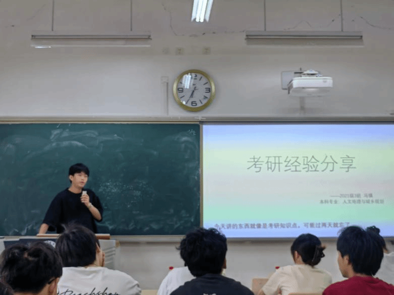 张老师首先发表了热情洋溢的开场动员。她表达了对出席本次会议的21级各位同学的感谢,并对近五年来,人文地理与城乡规划专业、测绘工程专业考研录取情况进行了介绍,对公司考研成绩进行了总结,不断增强了同学们的自信心。