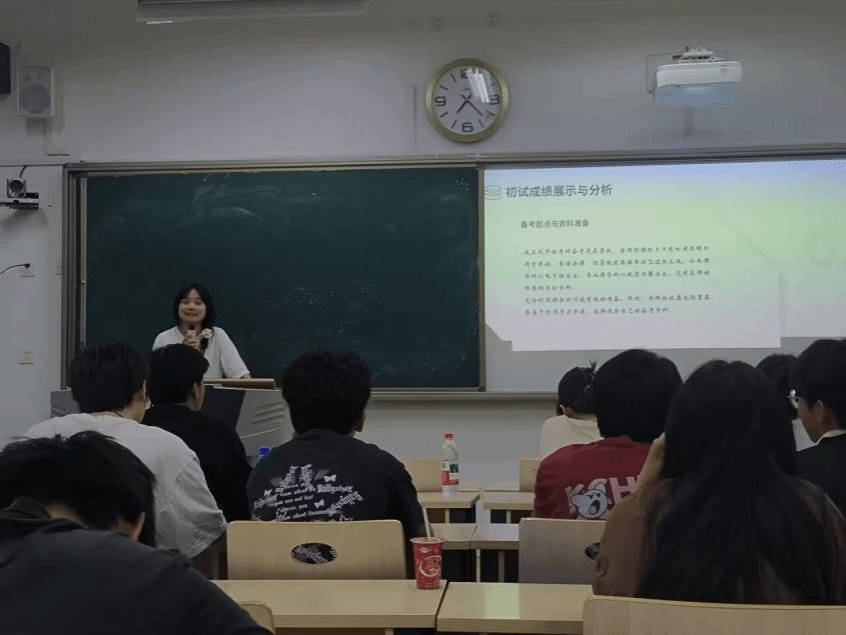 交流现场气氛热烈,座无虚席。4位学长学姐们依次上台,从考研方向选择、笔试复习、复试备考以及考研心态等方面进行了分享。他们讲述了自己在备考初期如何确定目标院校和专业,强调了根据自身兴趣、职业规划以及院校招生情况综合考量的重要性。在复习规划方面,他们详细介绍了各阶段的学习任务和时间分配,从基础阶段的全面复习、强化阶段的重点突破,到冲刺阶段的模拟训练和查漏补缺,为同学们勾勒出了一条清晰的备考路线图。对于专业课的学习,他们分享了独特的学习方法和资料收集渠道,建议同学们提前了解目标院校的指定教材和考试大纲,有针对性地进行复习。在公共课复习上,他们也给出了实用的建议,如英语要注重词汇积累和长难句分析,数学要多做题、多总结解题思路,政治要关注时事热点和重点知识点的记忆等。在复试方面,要注意仪表仪态,保持自信、从容的态度,回答问题时要条理清晰、逻辑严谨,语言表达要准确流畅,在复试前进行模拟面试。