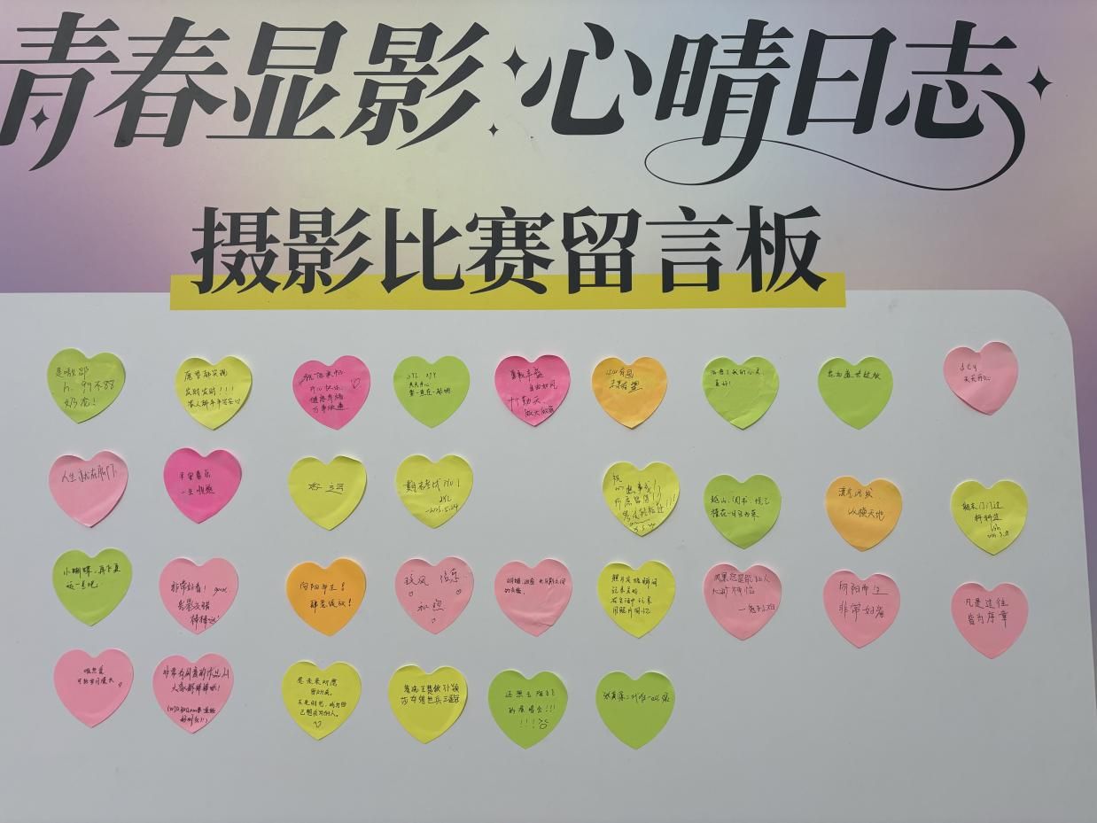 摄影展共展出50余幅来自公司和数信公司的优秀摄影作品,每一幅作品都凝聚着创作者对生活的观察与思考,通过独特的视角展现出人们内心丰富的情感世界和对美好生活的向往。活动现场,不少同学表示,他们从这些作品中感受到了温暖与力量,也启发了自己以更加积极的心态面对生活中的挑战。活动现场还设置了互动环节,同学们可以为喜爱的作品投票,并在留言墙上写下自己的观展感受和对心理健康的感悟,进一步增强了活动的参与感和互动性。最终,两个公司共评选出一等奖10幅,二等奖20幅,三等奖30幅。
