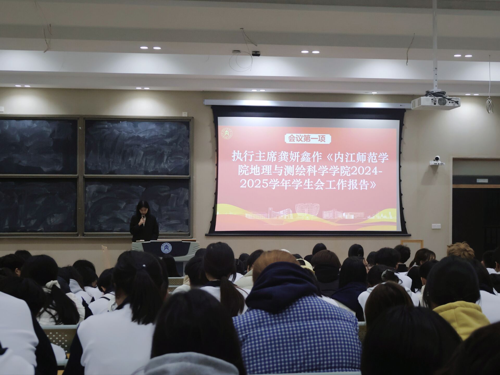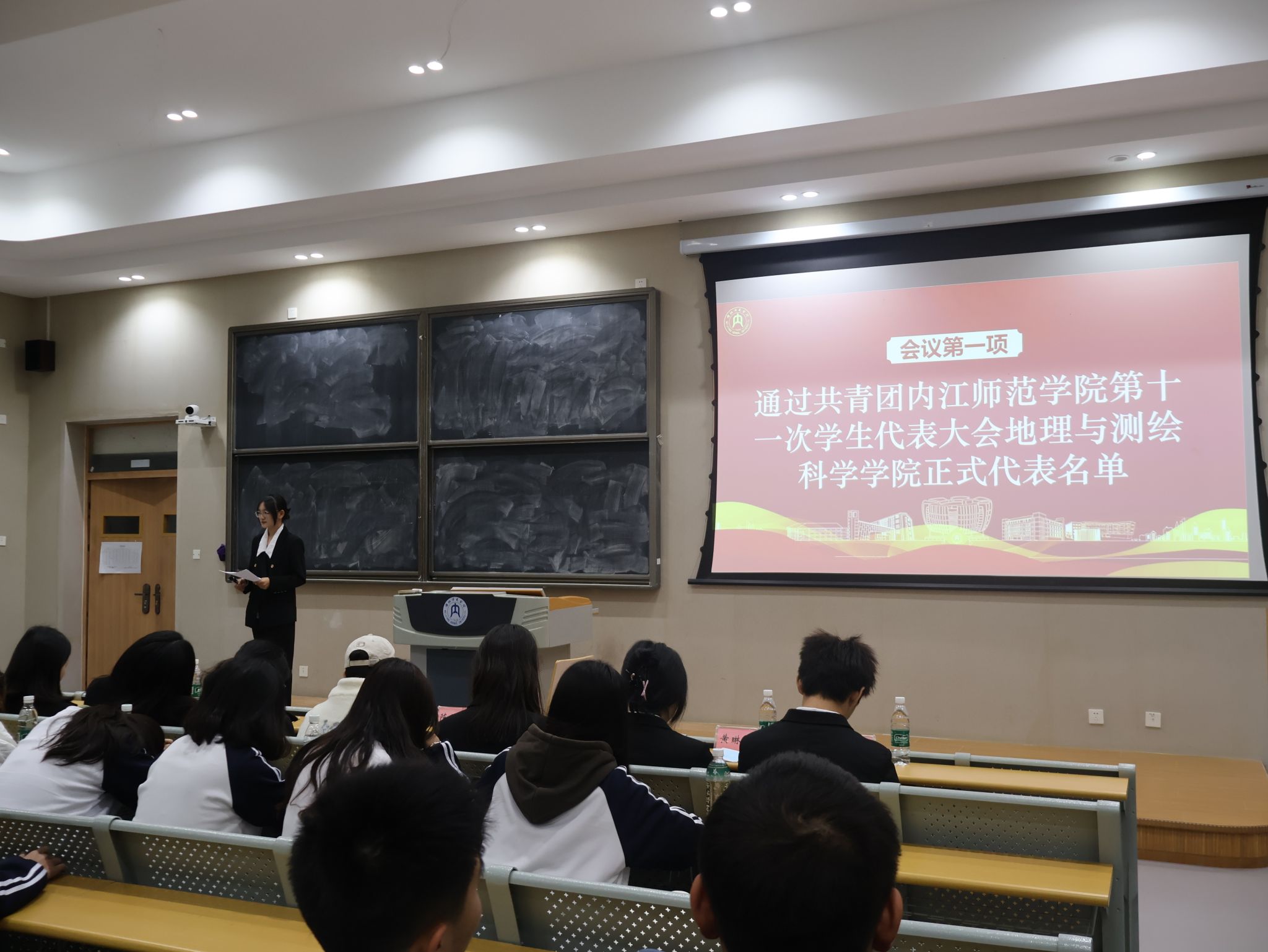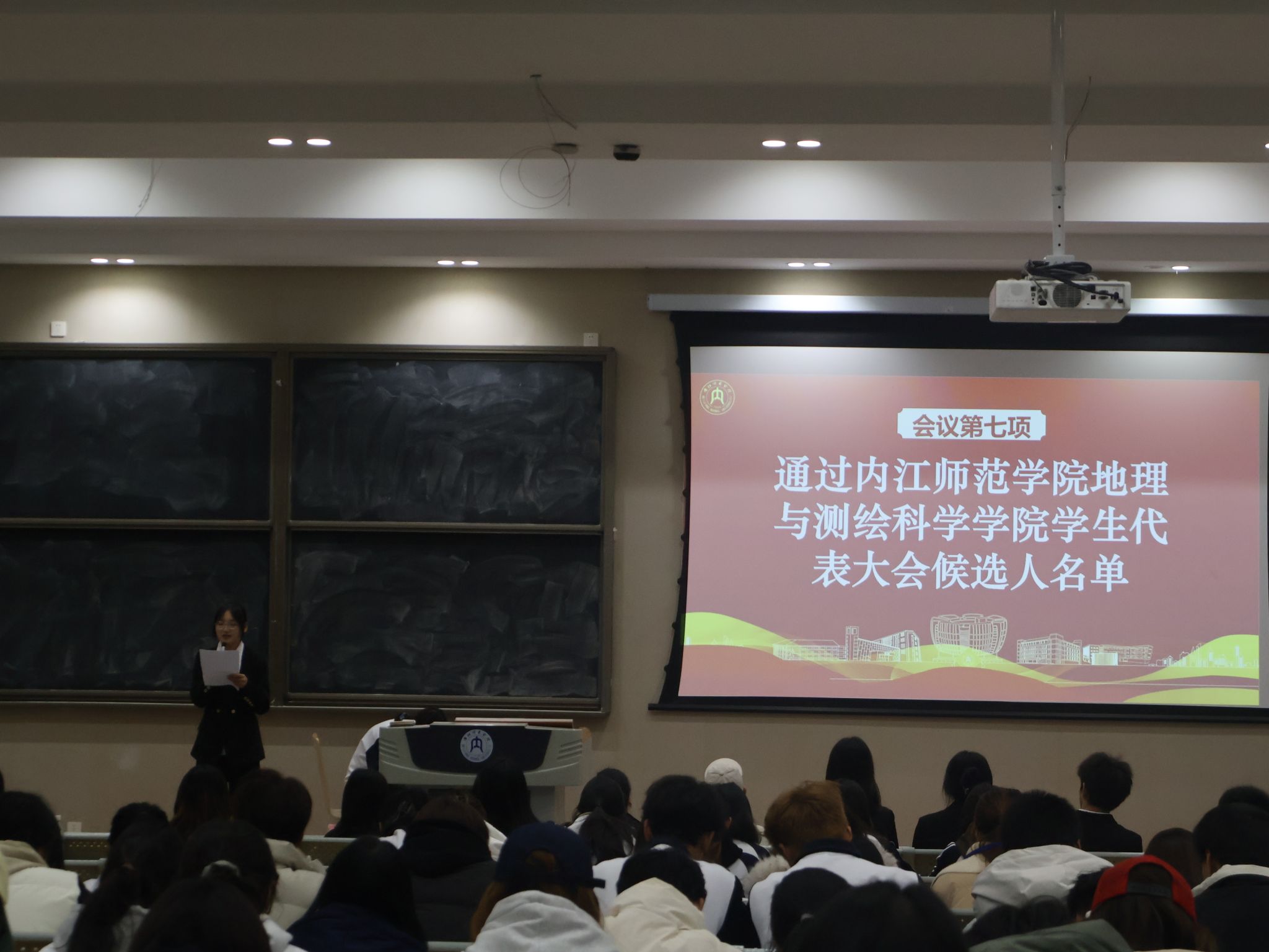 大会在庄严国歌声中启幕,主持人李锈娟阐明宗旨,立足新起点凝聚青年,赋能员工骨干提升服务质效。首先由执行主席龚妍鑫作年度工作报告,梳理过去一年员工工作的组织建设、活动开展等成效,明确后续工作方向,台下代表们全程专注,偶有轻声交流细节;随后主席团成员李明欣宣读选举办法后,代表们均以热烈掌声表决通过。选举环节前,主持人提醒各位参会人员“仔细核对候选人信息、规范填写选票”,现场秩序井然,代表们手持选票郑重勾选,投出选票时神情严肃,既严守会议纪律,又流露着参与民主事务的热忱。最终,大会顺利选出新一届员工会主席团、执行主席及13名校学代会代表,流程严谨高效。闭幕式上,选举结果经全体表决通过,大会在激昂团歌声中落幕。