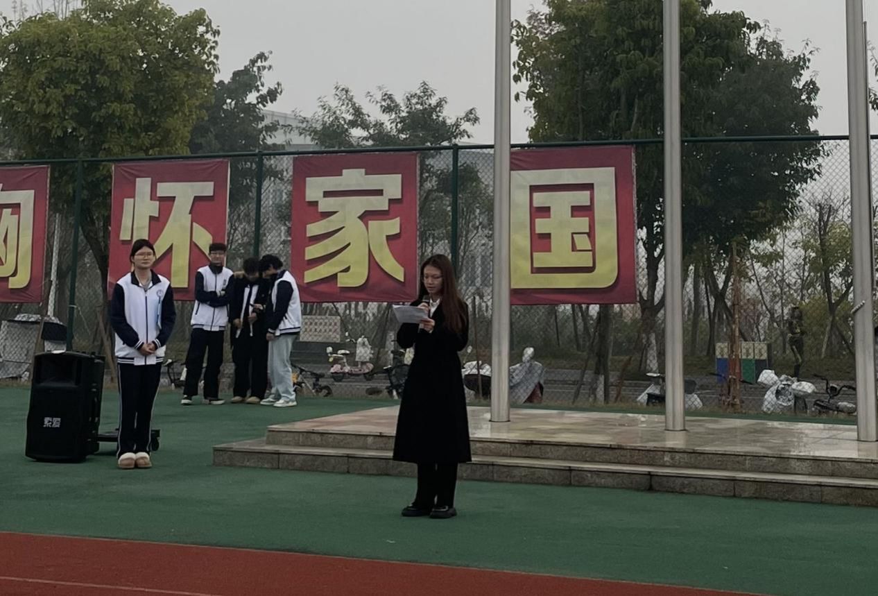 升旗礼毕,来自23级7班的兰乾玲同学带来了主题为《青春向党,奋进新征程,建功新时代》的演讲。她结合自身学习成长经历,分享了对新时代青年责任与担当的理解,呼吁全体同学坚定理想信念,勇攀时代高峰,鼓励同学们为建设社会主义现代化强国贡献青春力量。