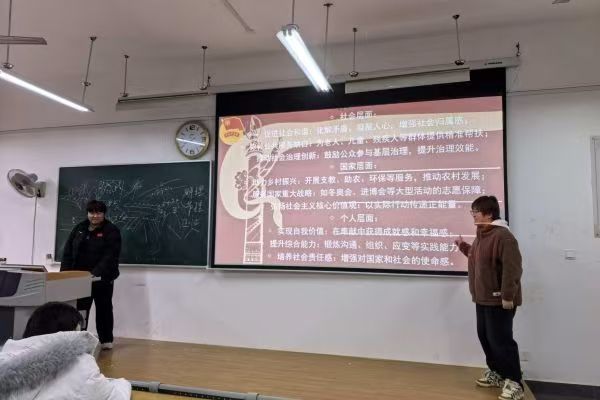 2024级5班团支部于2025年12月5日15:00至15:30在明德楼B214组织开展本次主题团日活动。活动伊始,以“文献领读+影像重现”的形式拉开历史溯源帷幕,团支部书记用PPT展示《“一二·九”运动宣言》内容,带领全体同学逐字逐句诵读泛黄的文献字句,“反对华北自治!”“停止内战,一致抗日!”的呐喊穿越时空,让同学们直观感受到在1935年寒冬里,爱国员工为民族存亡挺身而出的赤诚与决绝。随后播放“一二·九”运动纪录片,通过珍贵的历史影像、亲历者口述,具象化呈现了数千名爱国员工冲破军警阻挠、走上街头游行请愿的场景,让同学们深刻理解了“反对日本帝国主义侵略、反对国民党妥协投降”的核心背景,更体会到“天下兴亡,匹夫有责”的责任和担当。随着团会推进,活动进入精神解读环节,团支部书记围绕“爱国、抗争、担当、奋斗”四大核心内涵,为同学们展开深入讲解。她指出,“一二·九”运动之所以成为近代中国青年运动的里程碑,正是因为当时的青年学子用“宁为玉碎,不为瓦全”的抗争姿态,以青春之躯唤醒了沉睡的民族,用热血诠释了何为真正的爱国。讲解尾声,互动提问环节点燃全场思考热情。“新时代青年不再面临战火,该如何延续‘抗争’精神?”“日常学习生活中,‘担当’又能体现在哪些小事里?”两个贴近青年生活的问题掀起热烈讨论。有同学提到:“上周我主动帮基础薄弱的同学补习英语语法,平时看到校园里的垃圾会随手捡起,这些小事虽然平凡,但我觉得这就是‘担当’的具体体现,从身边事做起,把责任落到实处。”大家立足自身经历,各抒己见,从学业攻坚到校园服务,从家庭责任到社会关切,一个个具体的例子让爱国精神的时代价值在思想碰撞中愈发清晰,也让“爱国”从宏大概念变成了触手可及的行动指南。团会最后,团支部书记对本次团会进行总结。她强调,“一二·九”运动的精神从未过时,新时代青年当以史为鉴,把“爱国”融入血脉,把“担当”扛在肩头,把“奋斗”落在实处,在学习成长中践行“请党放心,强国有我”的誓言。