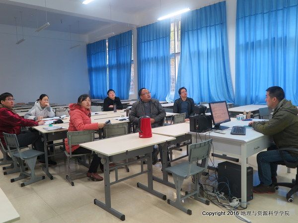 2016年11月25日下午,公司四川省本科专业评估会在第三实验楼召开。会议按教研室分3个小组。经理袁天凤教授、党总支副书记龚彬研究员、副经理胡晓东分别出席自然地理与地理教育、测绘与地理信息系统、人文地理与城乡规划教研室并指导相关工作。参与本次工作会的还有自然地理与地理教育教研室主任兼专业负责人付洪利、测绘与地理信息系统教研室主任兼专业负责人周丽、人文地理与城乡规划教研室主任兼专业负责人罗杨洁、各专业评估相关老师等20余人。