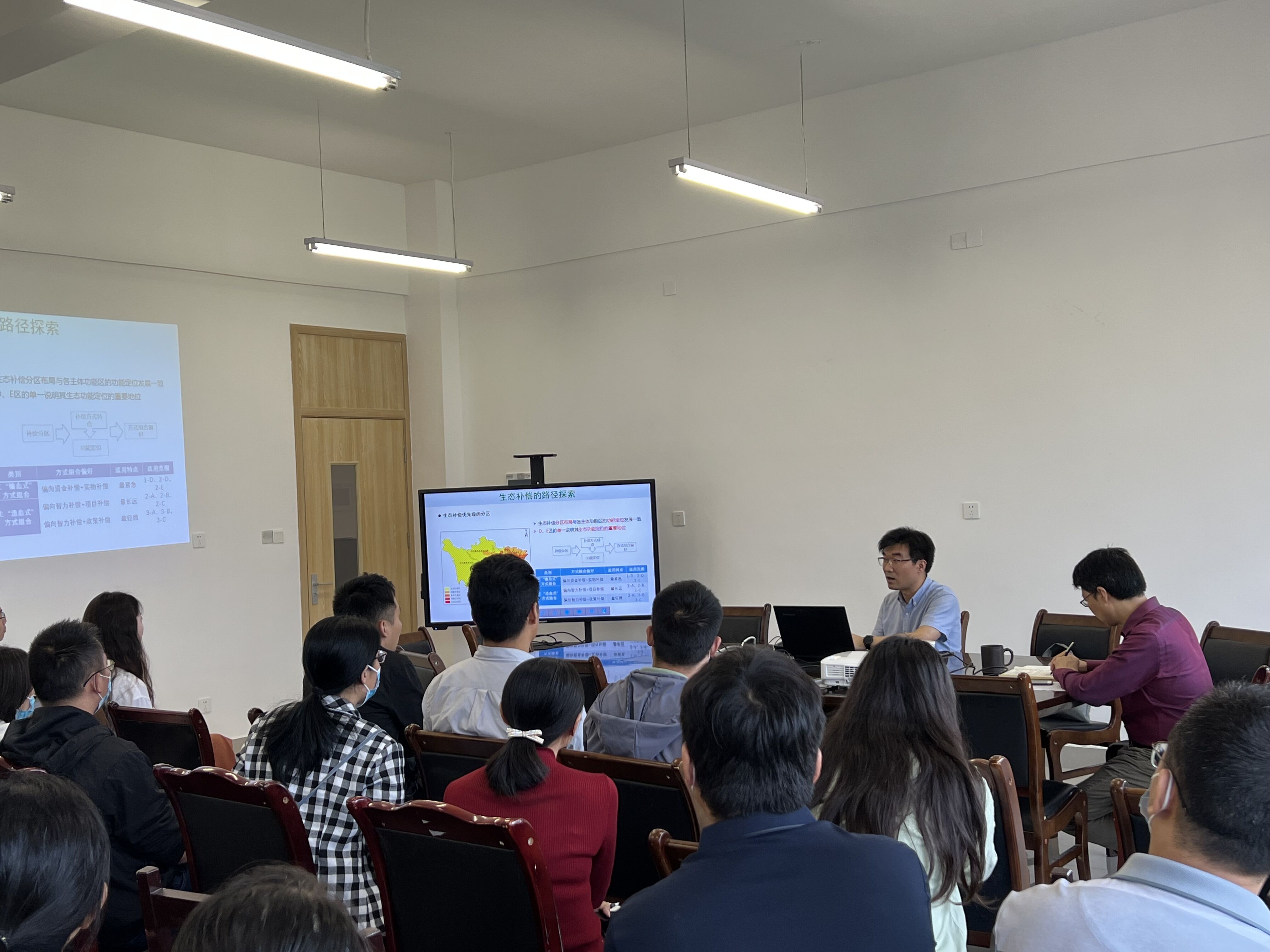 彭立教授在讲座中首先谈到了地理学研究课题选题问题,认为选题主要来源于学科需求与任务需求,选题时需要考虑国家和地方重要战略需求、相关战略及政策实施需要以及区域本底条件等;同时,他结合自身申报主持的几项国家自然科学基金项目,具体介绍了选题的背景和思路,如开展县域“三生”空间模拟优化研究旨在解决主体功能区规划约束下国土空间规划怎样落实的问题,研究生态补偿标准核算模型、确定补偿和受偿主体以及生态补偿优先级分区等问题,目的是探索主体功能区框架下生态补偿的路径,开展生态清洁小流域综合治理分区及优先级划分研究,是国土空间生态修复背景下基于小流域层面的地理学实践。讲座中,彭立教授特别强调,重大课题的申报和研究要立足于揭示与解决区域实际问题,要注重方法的创新与支撑,对区域现实问题要善于进行学术化的建构与语言表达。