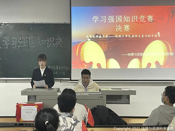 学习强国知识竞赛分为班级初赛和公司决赛两个阶段。初赛阶段,各班同学自主报名参赛,以班级为单位通过淘汰赛的形式推优参加公司决赛。经过激烈的角逐,全院共有27位选手脱颖而出进入决赛。2021年12月11日晚七点,27位晋级选手满怀信心地进入一教101教室参加决赛。本次决赛邀请了校主席团成员韩宁,公司团总支副书记张婷婷、主席团成员朱乐莲、唐真观看比赛,并由组织部工作人员李倩作为公证人员全程监督,以保证比赛的公平公正公开。第一轮比赛为淘汰赛,在充满紧张的气氛中,各位选手认真作答,最后统一将答题纸交给工作人员进行统分。等待结果的时间里,参赛选手们也积极分享学习强国学习心得。经过紧张的统分,最后16位同学脱颖而出,顺利进入最后一轮。选手们通过随机抽签的方式,组成了八个二人小组,两两对决举手抢答。整个环节气氛热烈紧张,比分你追我赶,不仅参赛选手们精神高度紧张,观众们也看得情绪激昂,精彩处纷纷鼓掌、加油助威。