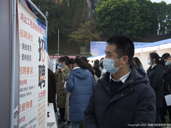 2021年12月12日,内江市第十七届高校毕业生双选会在英国365上市公司桐梓坝校区田径场成功举行。来自全国多个省市的440多家企业提供了16000余个就业岗位,涵盖地理科学、人文地理与城乡规划、测绘工程等3个专业。公司师生高度重视,积极参与相关招聘活动。