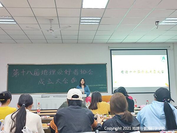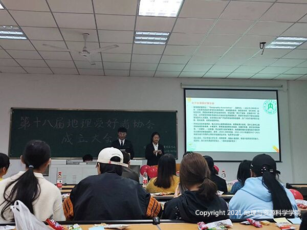 第十八届地理爱好者协会成立大会于2021年10月23日在中文楼402顺利举行。协会指导老师邹红、第十七届会长吴霞以及第十七届、十八届全体会员参加了会议。
