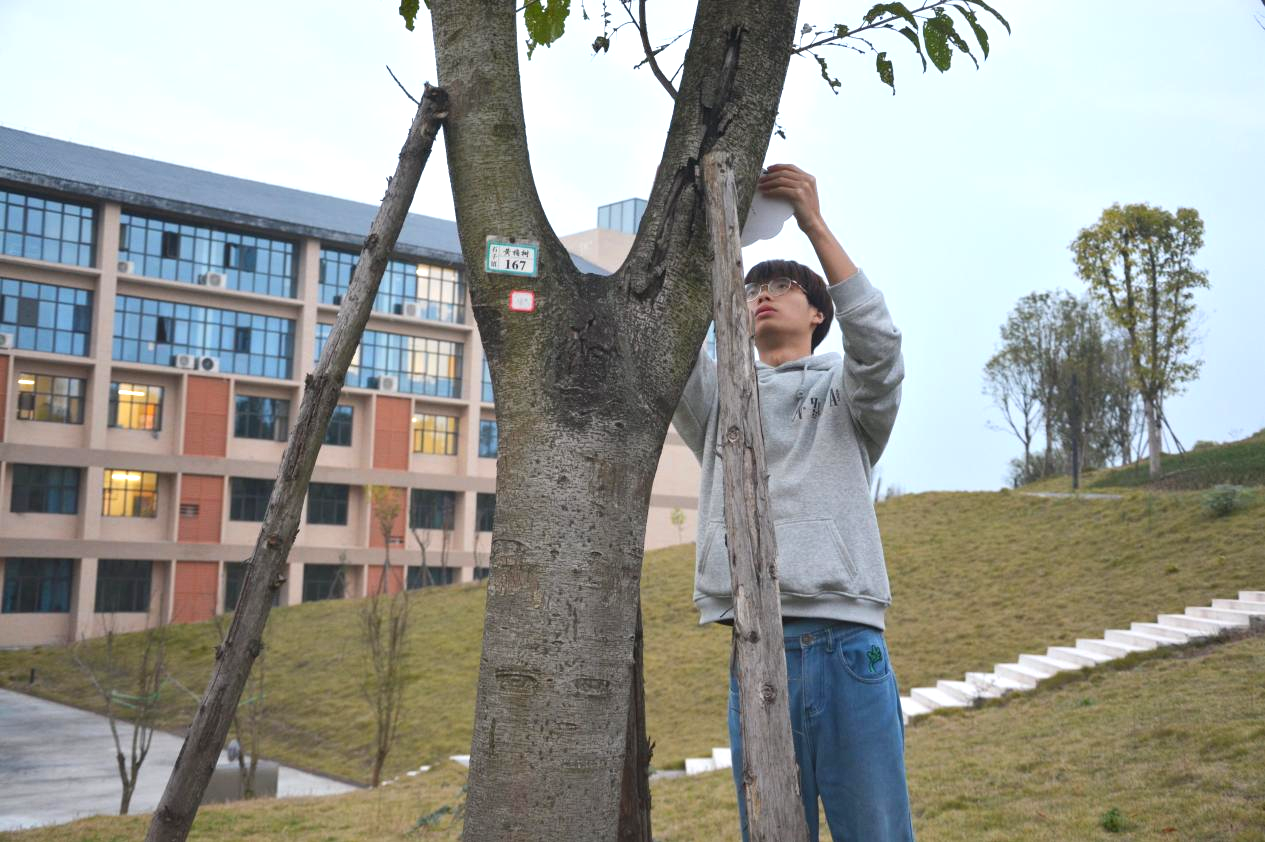 在生活部工作人员的指引下,同学们有序的跟随齐书记和四位老师前往格致楼后山进行挂牌。大家到达指定地点后由生活部工作人员给大家分发挂牌,再由齐书记向大家介绍挂牌植物的相关知识以及挂牌时的注意事项和方法,同学们仔细聆听讲解并认真地为树木挂牌。