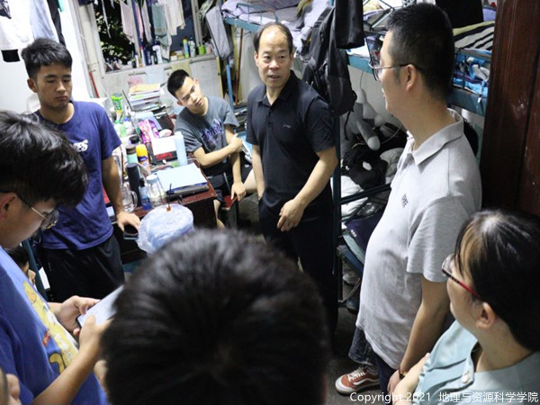 团组织生活会后,窦副处长和谢副处长在班主任赵晓燕老师的陪同下走访12栋男生寝室,关心同学们的日常生活,检查了寝室安全与卫生,提醒同学们要注意人身和财产安全,构建和谐寝室环境。