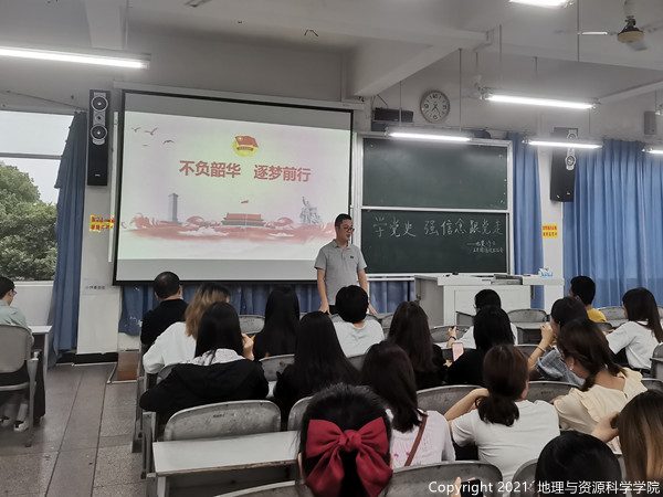 为深刻认识改革开放,让青年员工充分认识改革开放的进程和发展,增强员工对国家发展方向的了解,帮助同学们提高自身的思想道德素养和科学文化素养,将个人发展方向与国家发展需要相结合,2021年5月31日19点,后勤处副处长窦洪才和评估处副处长谢洪雨两位领导深入联系班级,在五教南508参加了19.2班召开的学党史、强信念、跟党走团组织生活会。通过视频、演讲、舞蹈等多种形式向两位领导展示了19.2班的班团建设,并做了防诈骗的相关知识讲解以及学习《习近平总书记在党史学习教育动员大会上的讲话》和《习近平总书记在全国脱贫攻坚总结表彰大会上的讲话》两个文件,使青年学子深刻感受到中国共产党的伟大壮举。