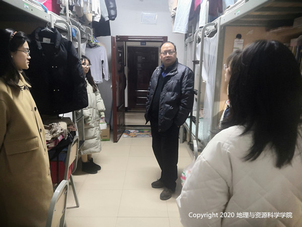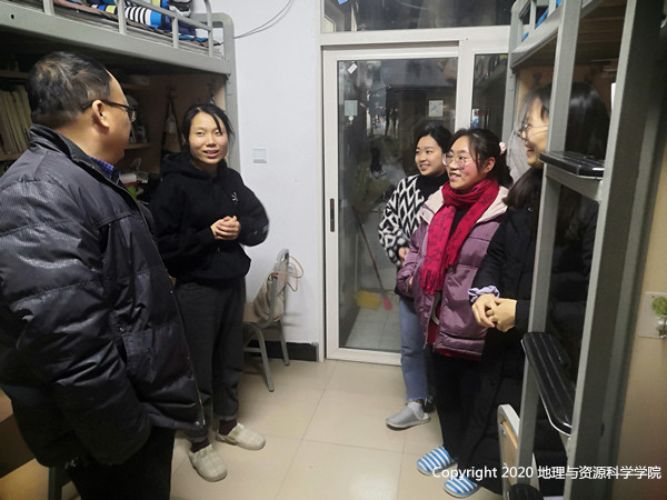 2020年12月24日晚7点30分,公司党总支书记龚彬,在班主任和班委的陪同下,深入联系班级人文地理与城乡规划19级3班员工宿舍,关心慰问员工,了解员工思想动态、日常学习和生活情况。