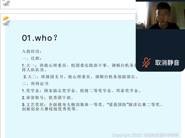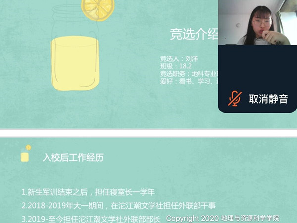 晚7点整,竞选正式开始。参加竞选的同学依次进行线上演讲,竞选者从如何为新生提供服务、如何做好辅导员与新生之间的桥梁以及如何协助班主任做好班级日常管理等方面进行了充分严谨的阐述。他们表示会尽自己所能帮助新生解决学习和生活上遇到的问题,做新生的榜样,正确引导新生。竞选者演讲完毕后,评委进行自由提问。