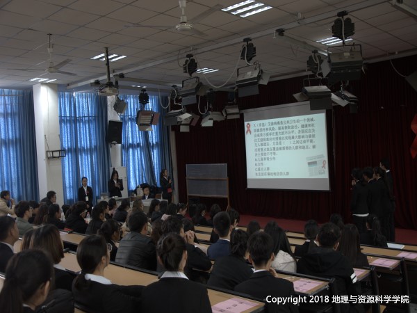 11月25日14点30分,由地理爱好者协会、老员工志愿者协会、艺千广告协会共同举办的预防艾滋病知识竞赛复赛第二轮在中文楼501教室正式开始,各二级公司的参赛选手参加了此次竞赛。