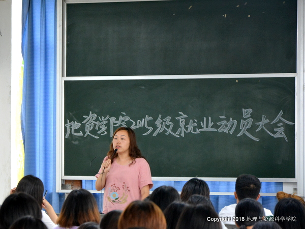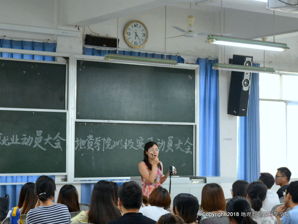 为强化实践教学环节,确保实习有序、有效实施,帮助同学们认清严峻的就业形势,树立正确的就业观,6月18日晚6点,公司在五教南508成功举办地资公司2015级实习动员大会暨就业动员大会,2015级全体同学参加了本次动员大会。大会由刘群老师主持。