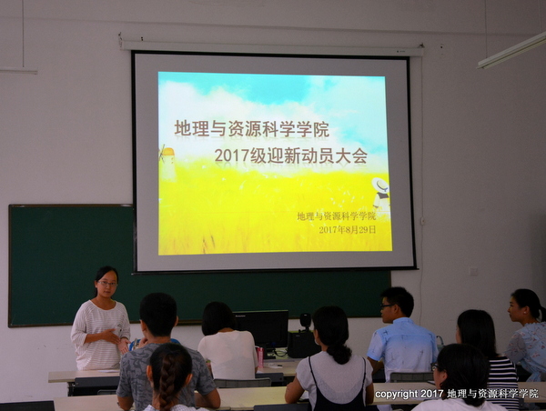 8月29日上午九点半,公司在新实验楼105召开了2017级迎新动员大会。辅导员罗利老师、团总支员工会主要负责人、地理爱好者协会会长、爱心传承服务队队长、环保志愿者服务队队长、2015级、2016级各班班长、团支书以及2017级班助参加了此次动员大会,为九月的迎新做准备。