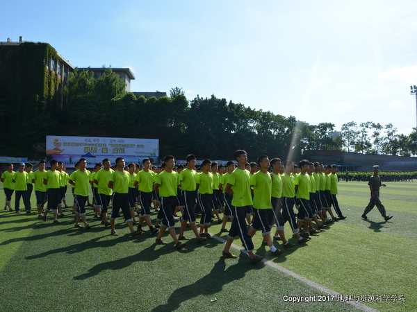 9月11日,阳光与炎热依旧在磨练着地资学子们的意志。军训的生活有苦有乐,让原本习惯依赖的我们变得独立坚强。休息期间,树荫下大家与教官围坐在一起,唱歌打趣,几个连的同学们一起对歌、表演,开怀大笑,但笑完之后,训练依旧认真刻苦!这,就是地资的学子!