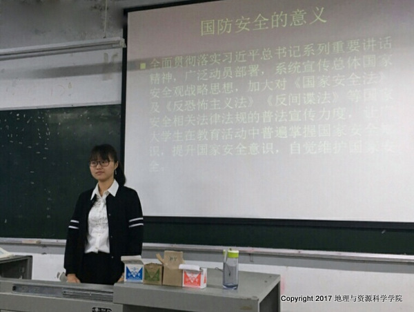 在本次教育宣传活动中,各支部均采用主题班会的形式,结合全民国家安全教育日视频,安全教育PPT等方式多方面,多角度,多方式的解读“国家安全教育”。其中16级2班通过讲解《国家安全法》及《反恐怖主义法》《反间谍法》等国家安全相关法律法规的知识来加强同学们的国防安全意识。15级1班通过ppt展示国家安全的相关资料,询问和引导同学踊跃发言。14级2班则通过小品讽刺了国家间谍并阐述国家安全的相关知识,总结如何防范国家安全,对同学们的观点进行提炼。活动内容丰富有趣,更进一步的加深同学们对国家安全范防意识,提高同学们的国家安全防范能力。