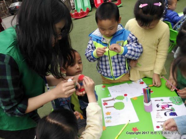 4月21日,服务队来到桐梓幼儿园进行环保绘画活动。在准备好的绘画模板上,让小朋友们自己上色,黑色的空气、黑色的河水、只剩树桩的大树……都可以反映出小朋友眼里的世界,同时也折射了我们的环境现状,为我们要爱护环境,保护地球敲响了警钟。