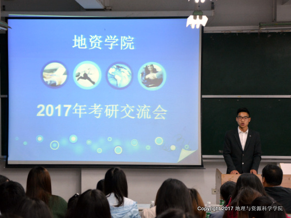 会上,几位考研成功的师兄师姐受邀来给大家分享考研经验。他们分别从公司的选择、考研各科复习技巧与方法、考研的心态、复试等方面进行了交流。其中,考上了云南大学人文地理专业的王函师姐告诉大家,复试时老师很重视考生是否参加过科研,因此一定要抓住本科阶段的宝贵时间参与老师的科研,积累科研经验。考上了西南科技大学的城乡规划专业的李泽容师姐说道,考研一定要保持平和的心态,并告诫有考城乡规划这一专业意向的同学最好能提前学习关于快题的知识。来自13.4班的唐敏师姐以她自己为例,告诉大家选择公司一定要慎重,量力而行,不要抱着去试一试的心态,并且要随时关注所报考公司的信息。李晴师姐则分享了报考地理学科教育的宝贵经验和英语高分复习的方法。朱文东和13级1班的唐敏则提到,在考研过程中,一定要有自己的研友,必要时学会放松,只有这样才能在相互监督与支持中缓解考研压力,走向成功。