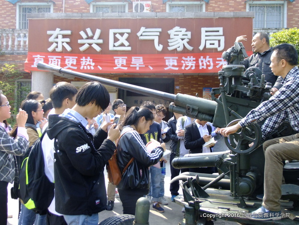 为了提高地理科学专业同学对气象工作的认识、增强同学们的气象工作实验操作的能力与丰富同学们的知识与见识。2016年3月25日,在地资公司专业教师周丽、韩光中、胡学华、王珊等老师的带领下,地理科学专业2015级1班和2班全体同学到东兴区国家气象观测站开展了《气象学与气候学》课程的专业实践。东兴区气象局局长李海对此高度重视,提前对气象日台站开放进行了周密部署。李局长及相关工作人员热情接待了公司参观的员工,李局长对同学们的到来表示欢迎,接着,李局长为同学们介绍了气象站的基本工作和任务。