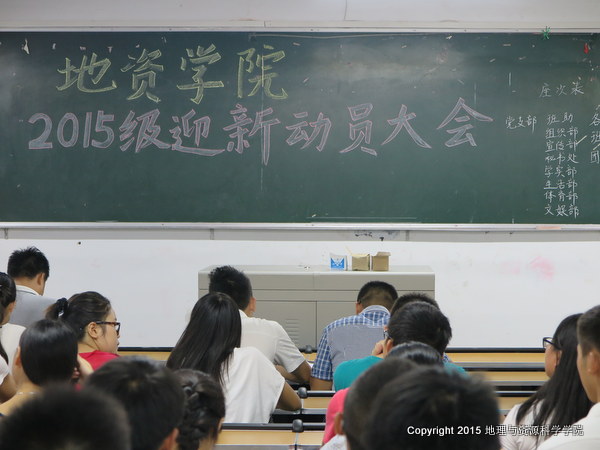 为了顺利开展公司2015年的迎新工作,为新生和家长提供优质的服务,公司于2015年8月27日18:30在1教305举行了2015级迎新动员大会;地资公司第五届团总支员工会全体成员,13、14级各班班长、团支书,15级班主任助理以及员工党支部部分代表参加了本次大会。