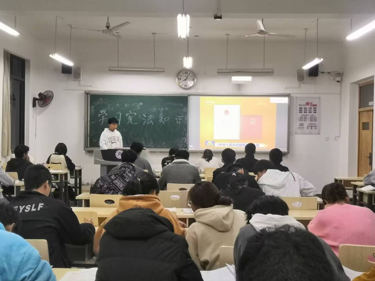 为加强宪法宣传,在公司的组织下,全院员工在“青少年普法”上学习了相关宪法知识,并于12月4日上午9点30分至10点30分各班准时开展宪法晨读活动,齐奏国歌、宪法宣读、齐唱宪法主题曲《宪法伴我们成长》,同学们积极学习,声音整齐洪亮。12月1日至12月7日,公司大一至大三各班开展“学宪法、讲宪法”的主题班会,同学们进一步深入学习和了解了宪法知识,明确学习宪法的意义,帮助同学们树立正确的法律观念,培养遵法守法的习惯。