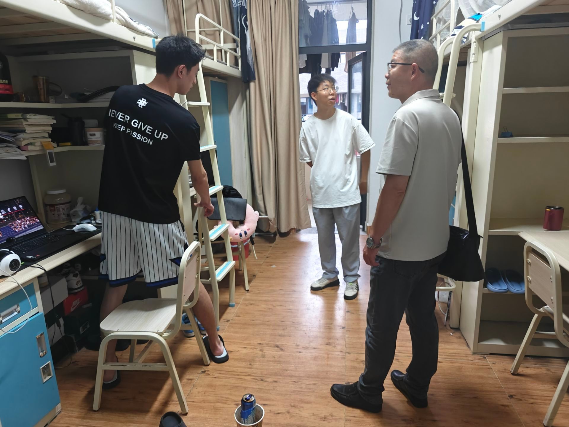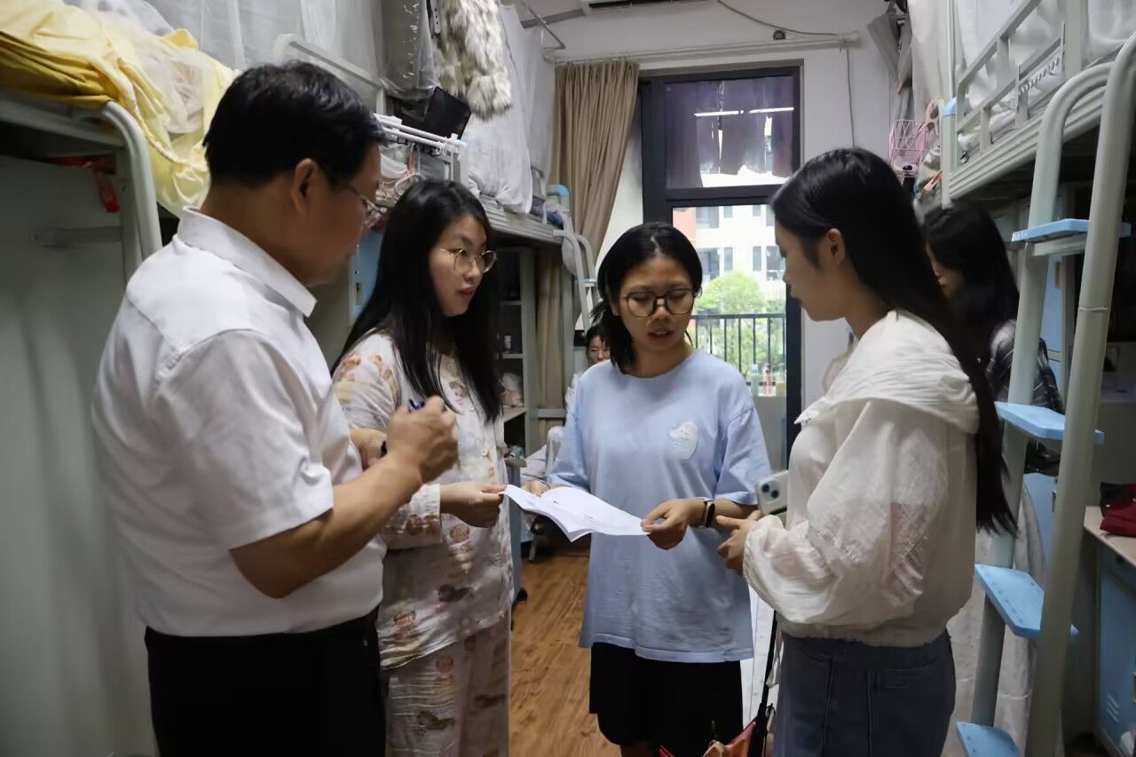 2025年6月18日下午六点半,公司党委书记齐永朝、经理艾大宾、党委副书记何阳阳、副经理胡晓东、副经理罗杨洁和学工办全体老师及毕业班班主任,走进员工宿舍,看望毕业生并为他们送上诚挚的毕业祝福。