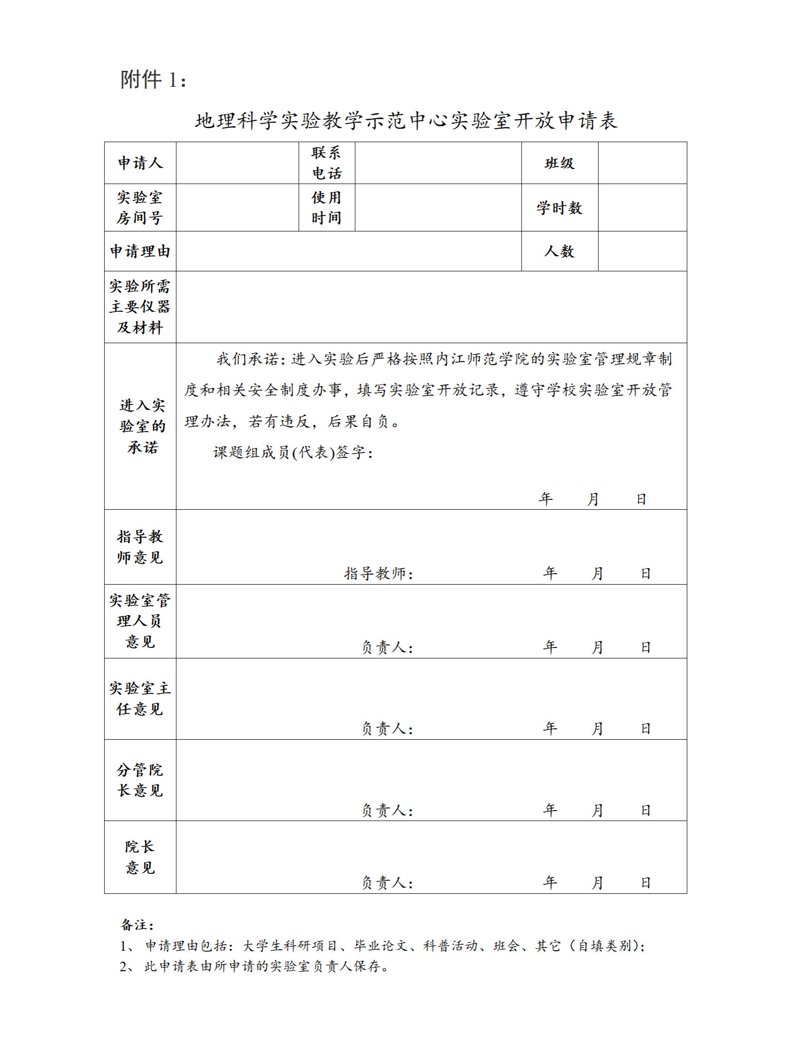 附件:1.地理科学实验教学示范中心实验室开放申请表