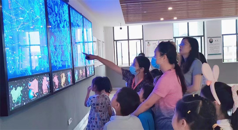演示结束后,公司李宏芸老师带领孩子们参观了天象厅展区,为大家讲解了黄道十二星座、四季星空及其变化以及月相变化,并指导孩子们根据生日找到自己的星座和生肖。从浩瀚的星空,再到与自身之间的密切联系,孩子们惊讶于星空和宇宙的奥秘,激发了对天文知识的兴趣和好奇心。教职工子女熊曜智说:“今天活动内容很丰富,带我学习了天文知识,让我了解了麦哲伦船队的航行路线,认识了很多星座,对我今后的学习很有帮助,我将来会利用自己的课余时间去了解星空更多的未知领域。”